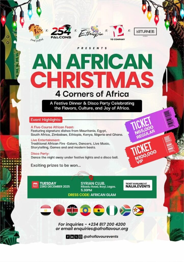 🎄 An African Christmas – 4 Corners of Africa A Festive Dinner & Disco Party Celebrating the Flavors, Culture, and